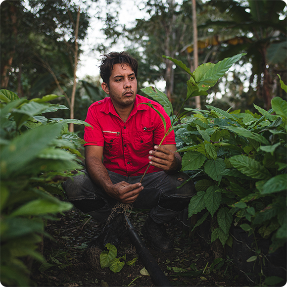 Prin încurajarea bunelor practici agricole, Fundația Lavazza sprijină cultivatorii de cafea în creșterea producției de cafea și în combaterea schimbărilor climatice. În plus, îi instruim să cultive o recoltă mai omogenă și de mai bună calitate și să selecteze cele mai bune cireșe în timpul procesului de culegere, care se face în întregime manual. Datorită senzorilor care au fost instalați pe plantațiile de cafea, fermierii pot monitoriza datele despre mediu, permițându-le să își gestioneze mai bine plantațiile și să identifice cel mai bun moment pentru recoltare.